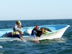 Hola! It is definitely an El Nino year here at Laguna San Ignacio; the water temperature is about 65 degrees, the air temperature in the high 70’s for the last 5 days. That’s about 10 degrees warmer than average. I usually don’t go out on the boats in shorts, (always bringing my rain pants), until mid March! The wind has been very light too, until today- a bit more and cooler temperatures. The coyotes were yelping 2 nights ago, a change of weather?