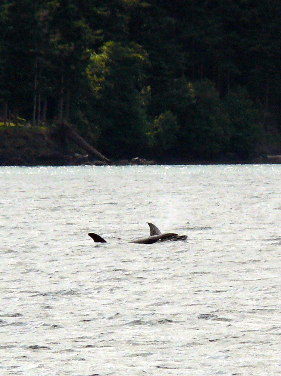 WOW! The wonder of the wildlife in the Salish Sea is ever changing on any given day! Today transient killer whales hunted right outside Friday Harbor by Brown Island. So we didn’t have to go far to start seeing whales. The family of transients showed behaviors such as lunging and direction changes that indicated they had gotten prey. There is a large population of harbor seals and harbor porpoise that those mammal eating orcas may have dined on. We traveled with the whales as they headed north up San Juan Channel, they seemed to rest for a bit, then sprung into action toward the north end of San Juan Island. The first hunting strategy will be to drown their prey and although we didn’t see the actual kill, several gulls flew in for leftovers. We did see a harbor porpoise heading south with a few more harbor seals that escaped being lunch today! A bald eagle sitting regally on its nest rounded out some of the diversity of wildlife in the San Juan Islands, another stellar day!