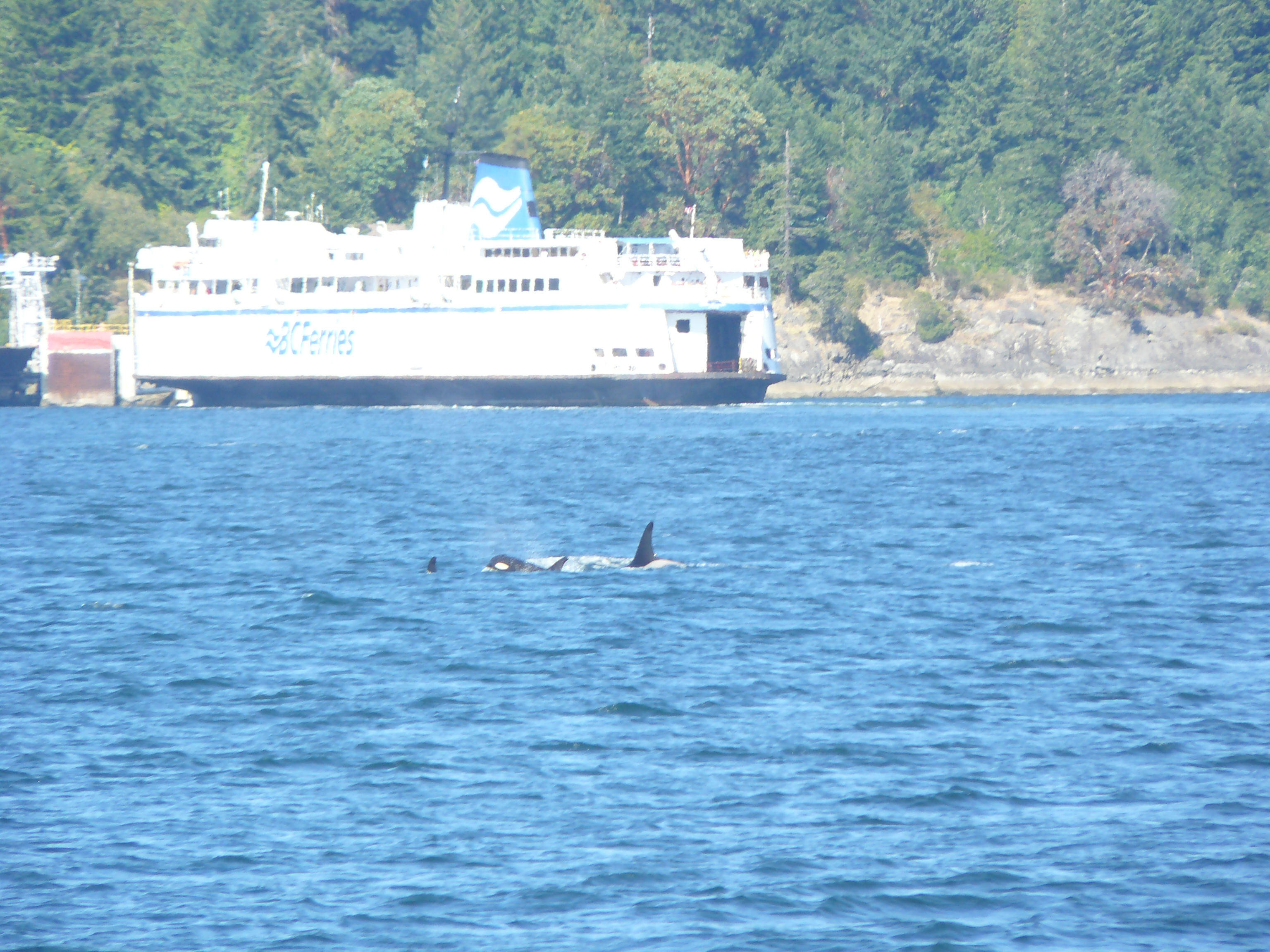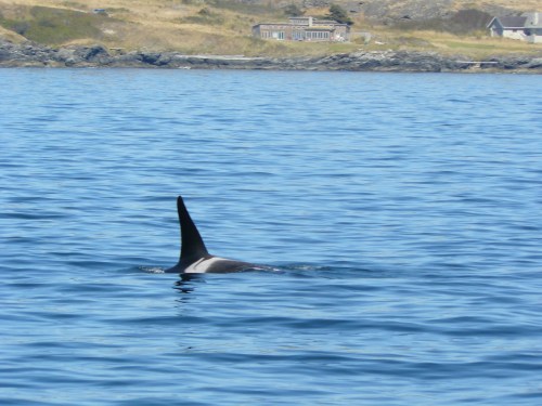 One of our trips took us to Canada, North Pender Island, where we found some J-Pod orcas, cruising right along the shore at Moat Point. There was a strong flooding tide they were using toward Active Pass. They showed how well their echolocation works to maneuver ships, ferries, boats, and docks, through some narrow areas!