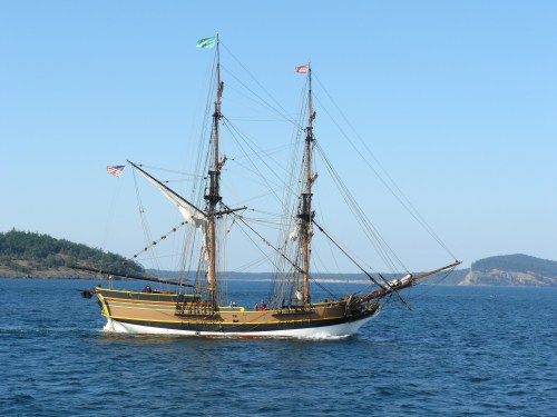 The ‘westside waltz’ is familiar, but one is never sure; are they going to keep heading north, or turn back one more time, keeping us guessing as to the best route to see them! Today we enjoyed not only a warm sunny summer afternoon, also going all the way around San Juan Island, a circumnavigation, where many marine mammals showed themselves! Harbor Porpoise, Harbour Seals, Dall’s Porpoise, and a Minke Whale off of the northeast end of the Island, zigging and zagging its way northwest! Orcas; J’s and K’s foraging off of False Bay, headlining our tour! We think we saw J-14 with J-45. J-17 Princess Angeline and family with the 3 mom’s and 3 babies all close together, making rapid twists and turns, really looked regal! Were they teaching the calves how to hunt? J-30 Riptide is one big 15 year old- he’s already huge and still growing. K-21 Cappuccino and friends are back hanging out with the J’s. Many marine birds on the water too; Heermann’s Gulls migrating through, (not so common anymore?) Common Murres, and a Kingfisher perched atop a western hemlock. We probably missed an Eagle sighting with our attention on the rest of the Salish Sea wildlife!