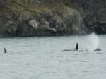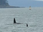 We went to see Yellow Island and Stellar Sea Lions on Spieden Island and as we headed back to Friday Harbor, going between Orcas and Jones Island at about 3pm, there the Killer Whales were again!, families hunting and traveling. We also saw Harbor Seals on the rocks, Bald Eagles, Rhinoceros Auklets, Murres, and Cormorants. A delightful trip!