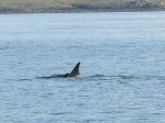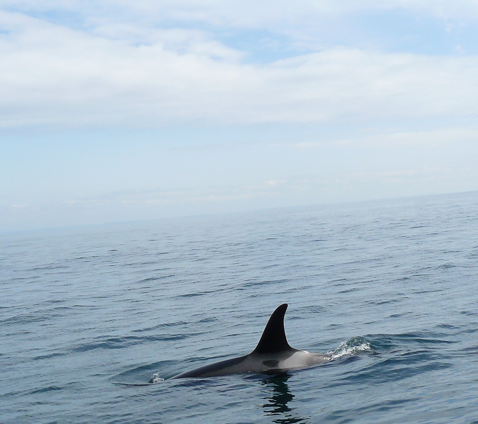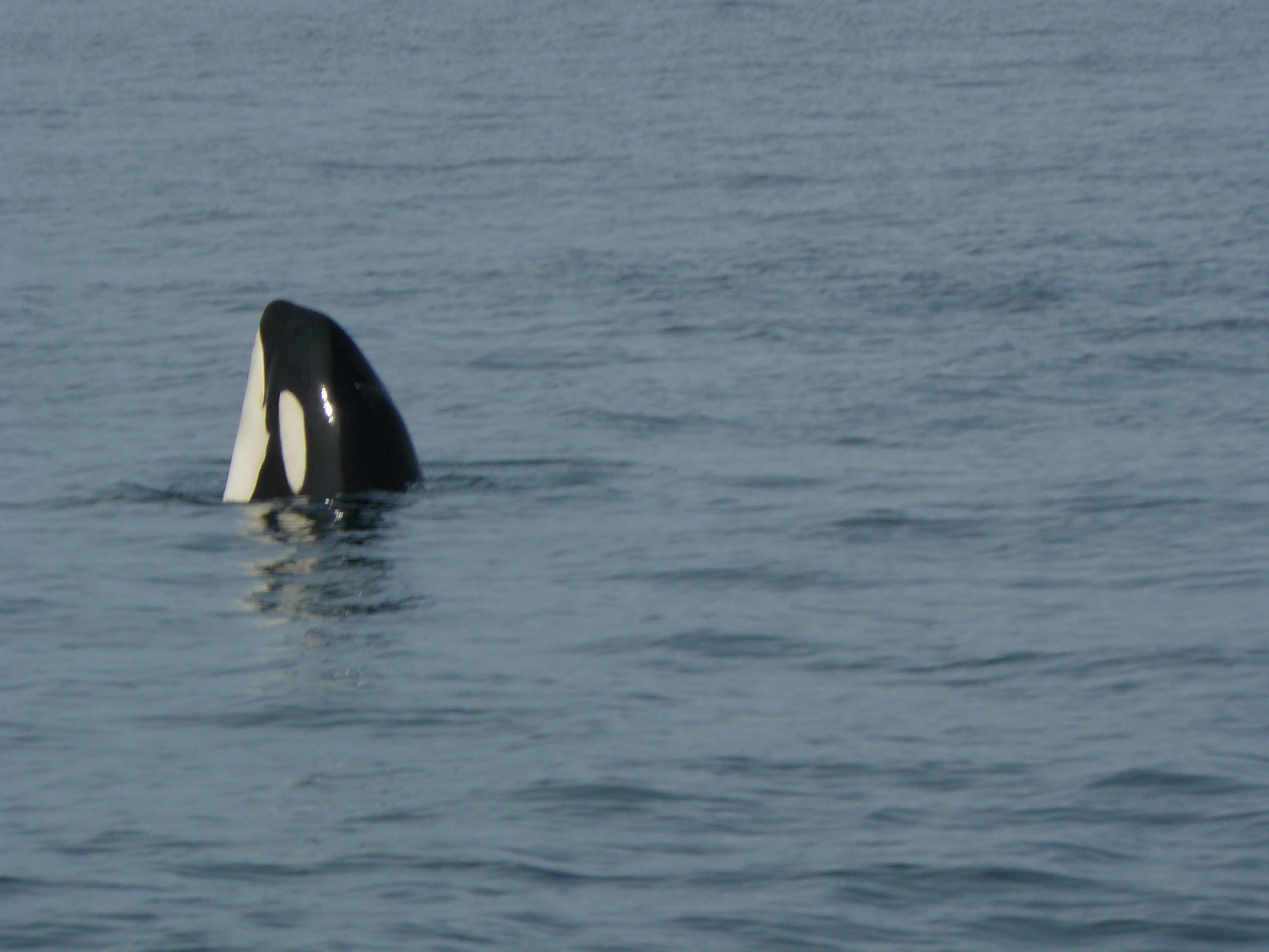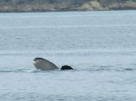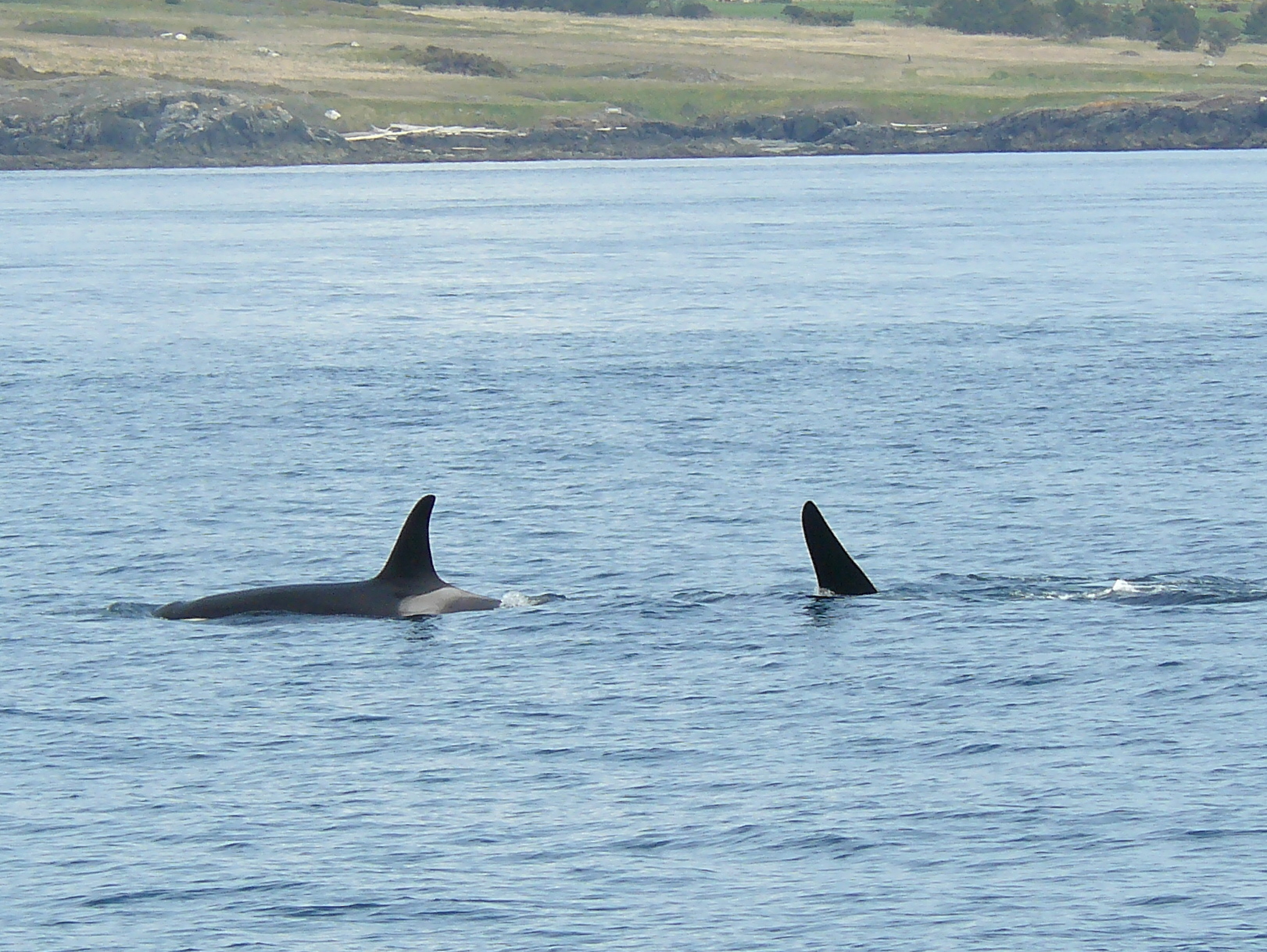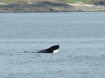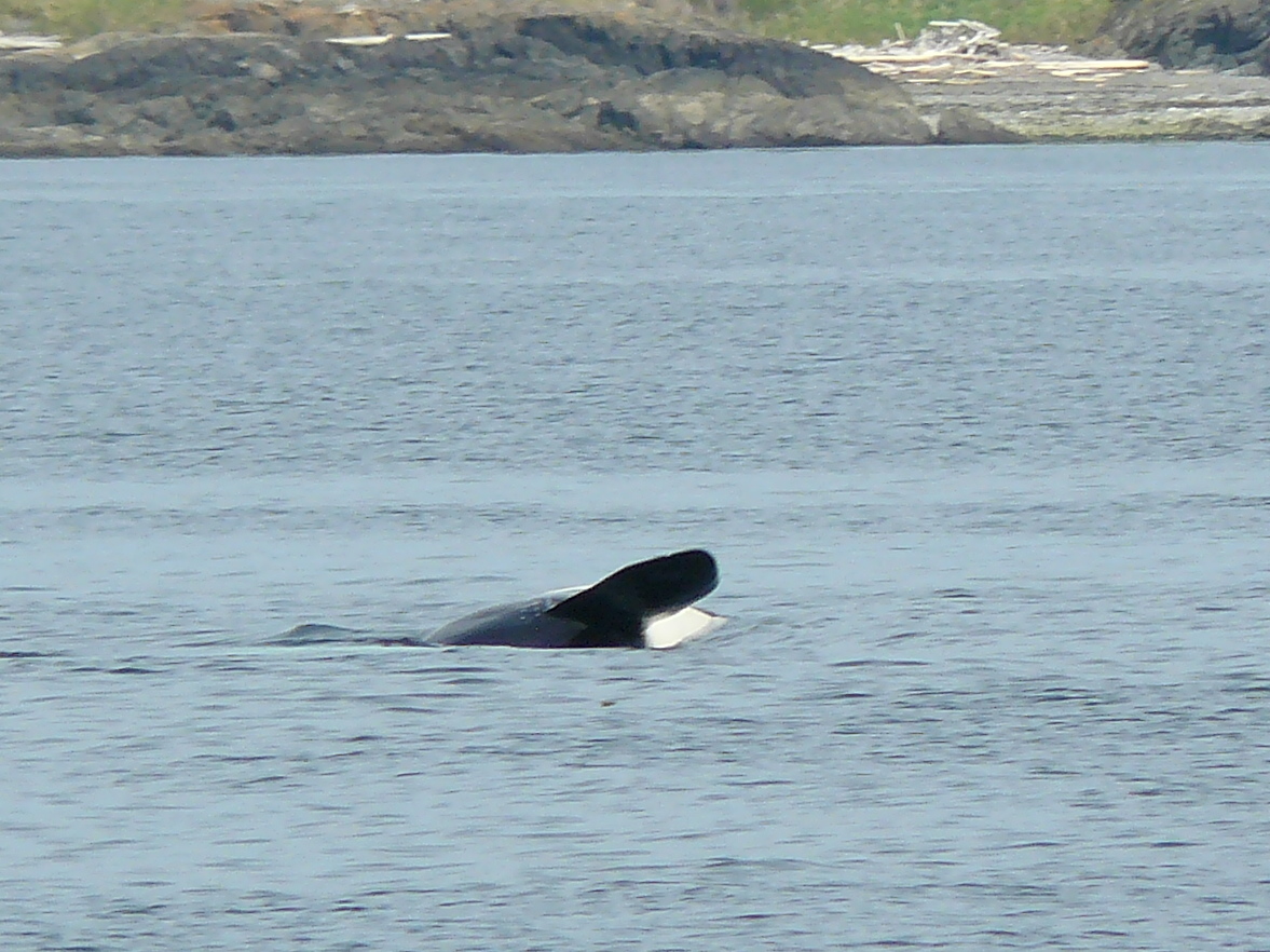 Starting out north on a nice, calm, sunny afternoon, no whale reports. Then, then! a rumor of Orcas in the Strait of Juan de Fuca, heading in east! So we turned around, headed south and west, and started seeing killer whale fins off of False Bay and San Juan Island, swimming against an ebbing tide.