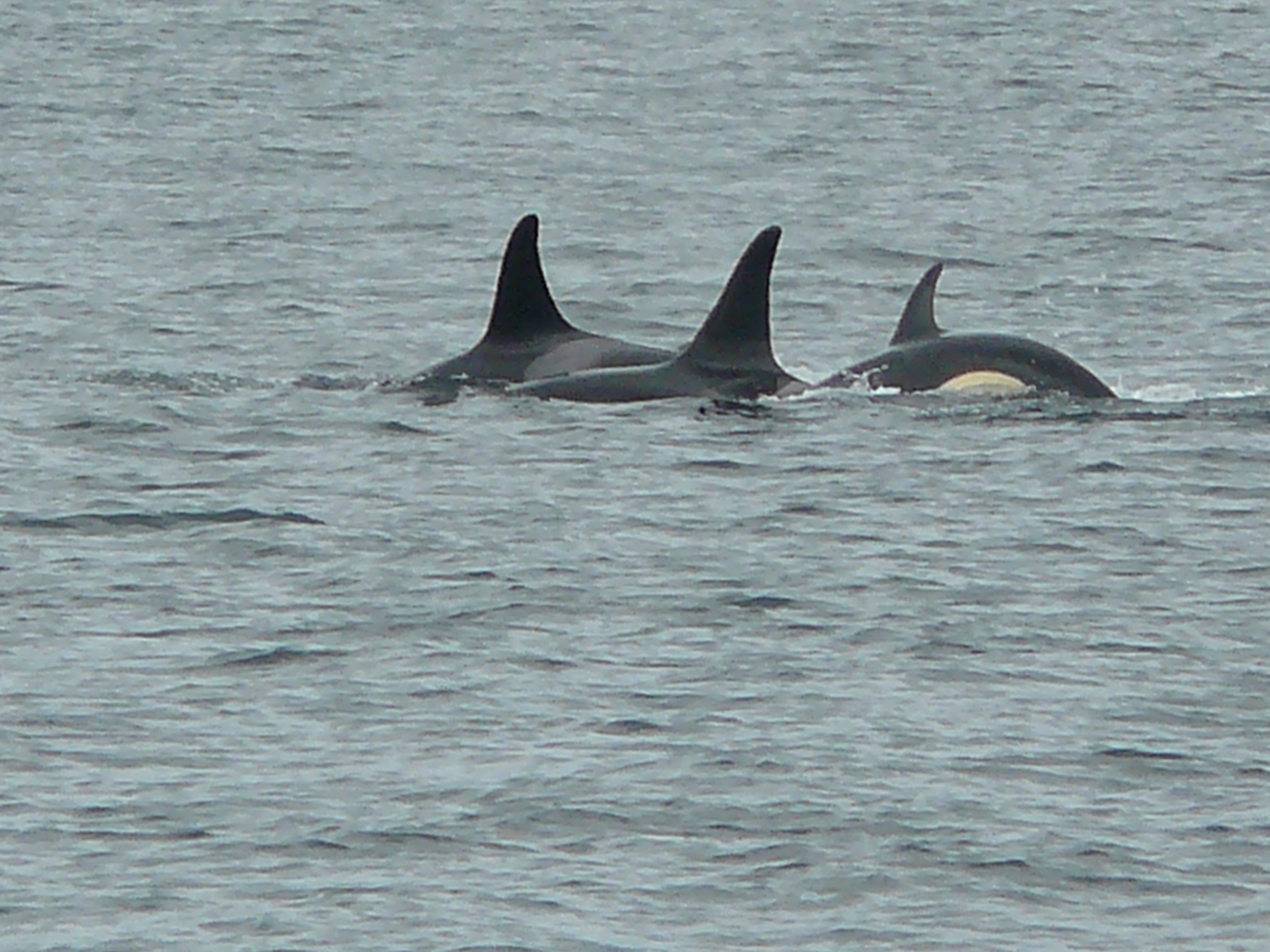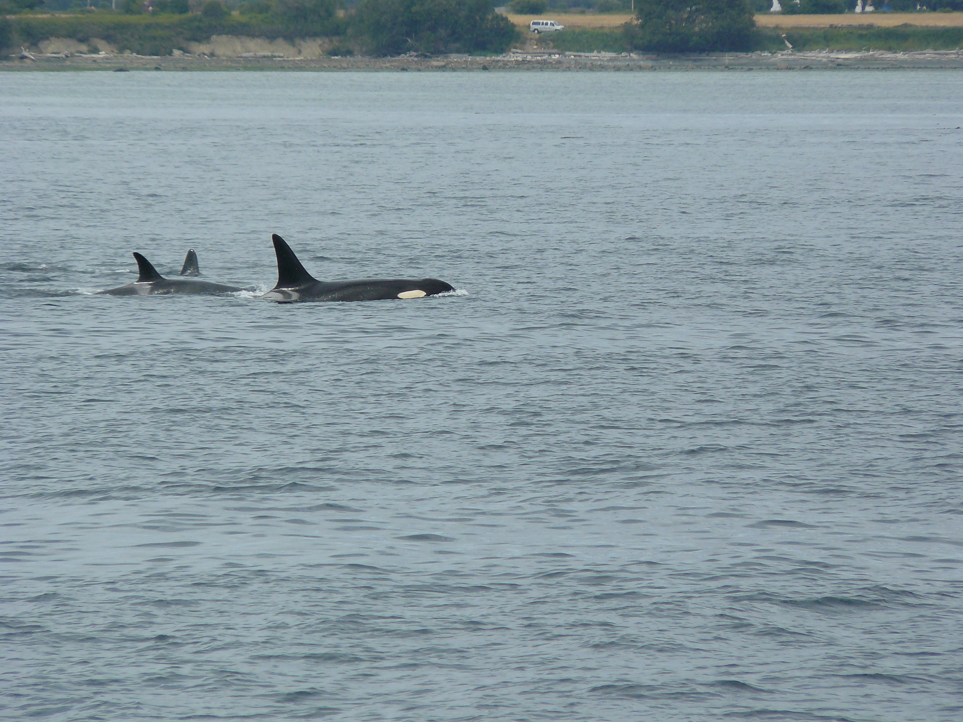 The time the Orcas are spending off the south end of San Juan Island, by False Bay, showing classic foraging, fishing behavior, makes me hope they are feasting on the Chinook Salmon! Today, with the tides settling down, the beginning of a flood tide, L-Pod and K-Pod whales were going back and forth, in 3 large groups, in different directions, then joining up. Rumor was J-Podders too, although I wasn’t able to ID or photograph the group over by Eagle Point. From about 2:55pm to 4:20pm, we watched the L-12’s, which includes L-25 Ocean Sun and L-41 Mega!, and K-20 Spock with her 7 year old son K-38 Comet and others. Again they did a lot of tail-fluke slapping the water. I have noticed this prevailing behavior this season, is it helping to stun the fish? A few spy hops, then some resting groups, with a male by himself offshore. Then they all went on very long dives, hopefully with full stomachs!