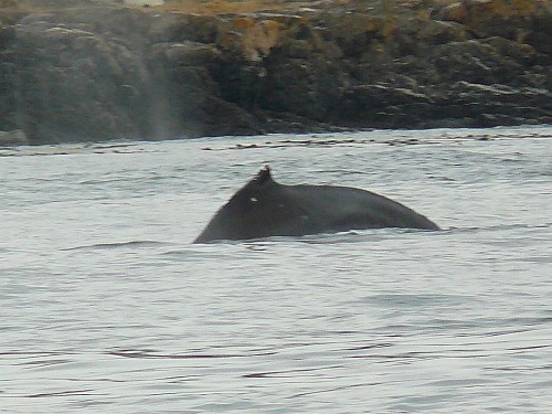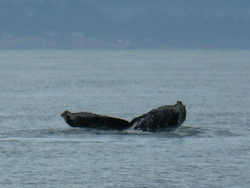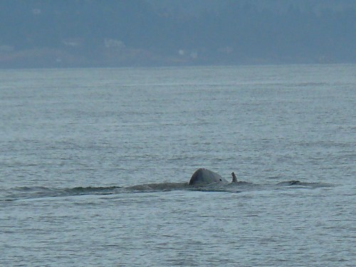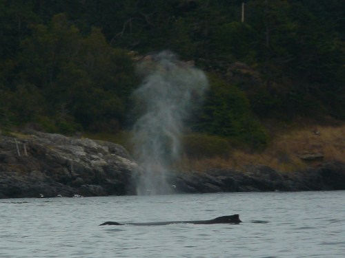 A bit cooler with sun trying to break through clouds, fairly calm water with a less than 2’ ebbing tide made for a pleasant sighting of a Humpback Whale! First spotted off of San Juan Island Hannah Heights at about 1:15pm, heading across Haro Strait at 2:05pm. The whale seemed to be foraging, zigzagging back and forth, near shore then more toward Hein Bank and Canada. Also saw Dall’s Porpoise, perhaps socializing with the Humpback? Nice to see more Humpbacks visiting the Salish Sea!