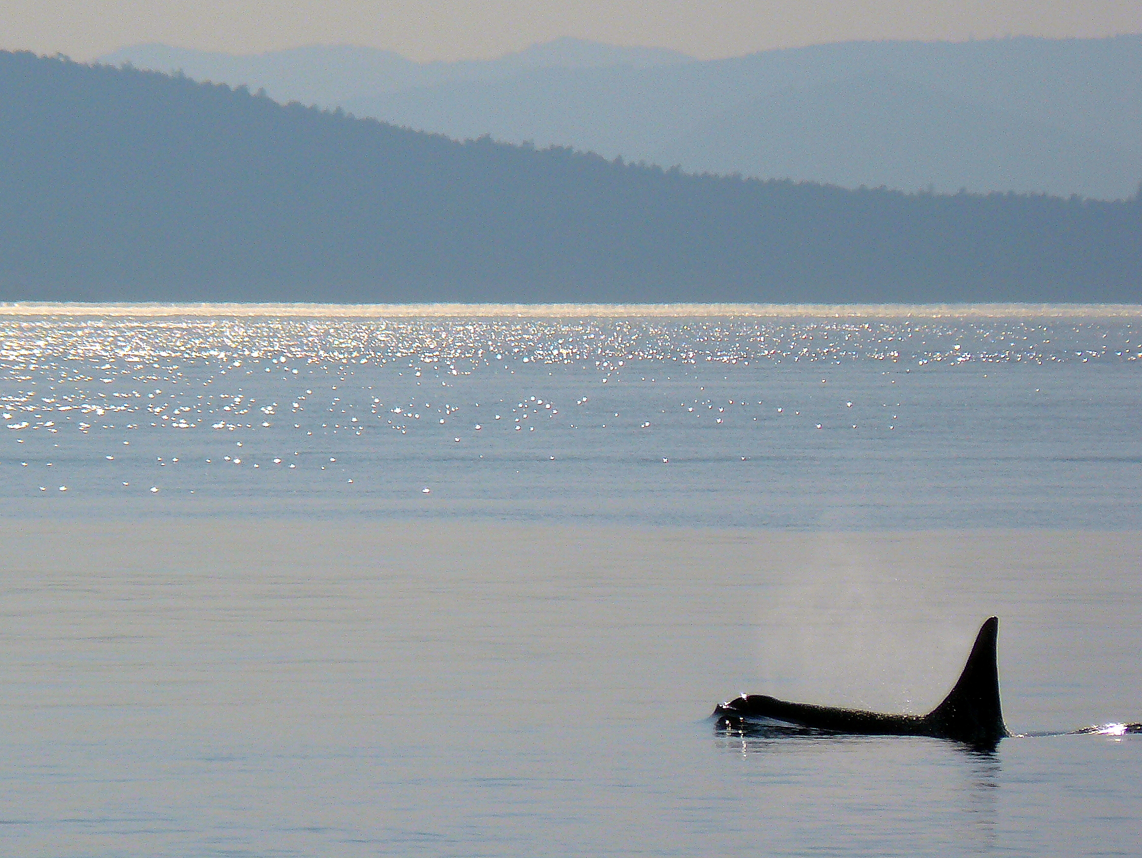 Honestly, I was delightfully surprised when we first noticed some Harbor Porpoise in Haro Strait, then a large amount of boats off in the distance in the Strait of Juan de Fuca, then, then breaching Orcas at about 4pm!! It looked like a large group that split as they got closer to San Juan Island, and 2 sub-groups headed up mid channel Haro Strait past the lighthouse. The warm wonderful summer sunshine made it difficult to see saddle patches and identify the individuals. The first sub-group turned around north of the lighthouse and slowly swam back against the tide, the female coming to the shoreline. It was J-2 Granny!!! She swam and played, turning upside down in the bull kelp beds! Was she utilizing a coastline countercurrent? We were all touched and awed to experience such a close, visible sighting of an estimated 103 year old Orca! We were also able to identify her 2 male traveling companions out in the strait, L-87 Onyx and J-34 Doublestuf. Harbor Seals were hanging out in the kelp beds too, relieved they were the fish eating Killer Whales! Had J-2 Granny and the boys cruised by checking for Salmon? For 2 hours, 4pm-6pm, we were graced with whales. There was also a wedding at the lighthouse delayed as the bride and groom sat on the rocks mesmerized by the whales! Wow! Forever memorable! This Orca visit made all the questions answered and ways how we can help, even more meaningful to folks visiting from many places- Washington, Oregon, California, Utah, a family from India! It keeps me hopeful in humanity with this connection to the Salish Sea and magnificent wildlife; that people will be mindful and caring of our impacts on our ocean planet.
