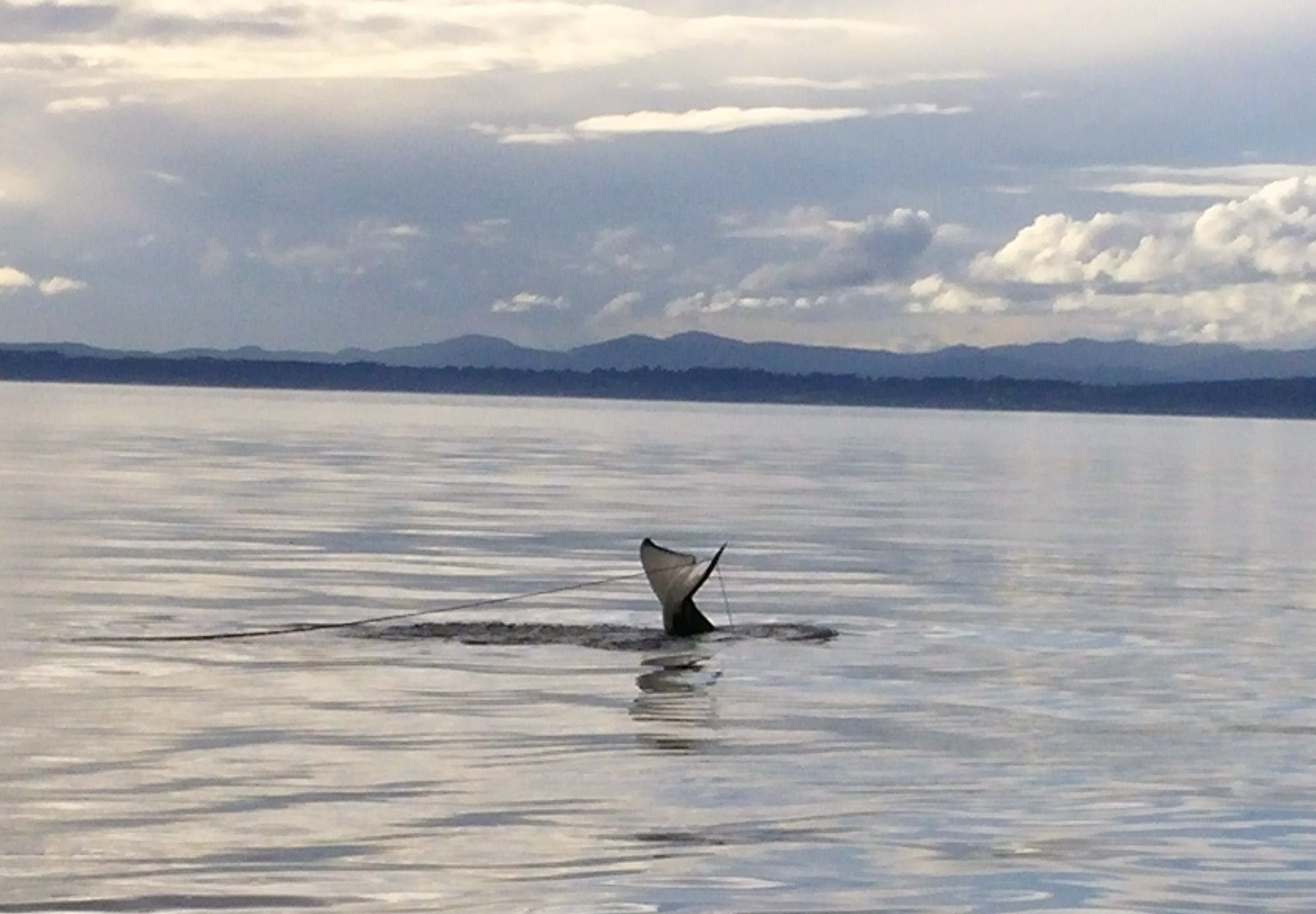 The Orcas milled a bit and Erin sighted and picked up a fish scale! so we can find out what they were eating. Then, ironically because I had just asked Ken about the ‘lags’- Pacific white-sided dolphins, poof! a group appears rapidly swimming toward us, across the boat stern wake! They were swimming away from and didn’t appear to be bothering the Orcas. They apparently can annoy, ‘harrass’ whales by swimming all over the whales and their rostrums- noses, and the whales react by trying to get away from the lags. I think of the lags as some of the hyperactive gossips of the seas!