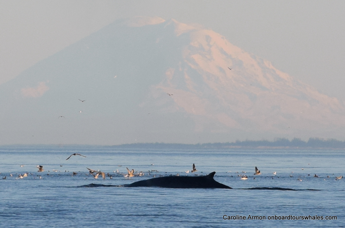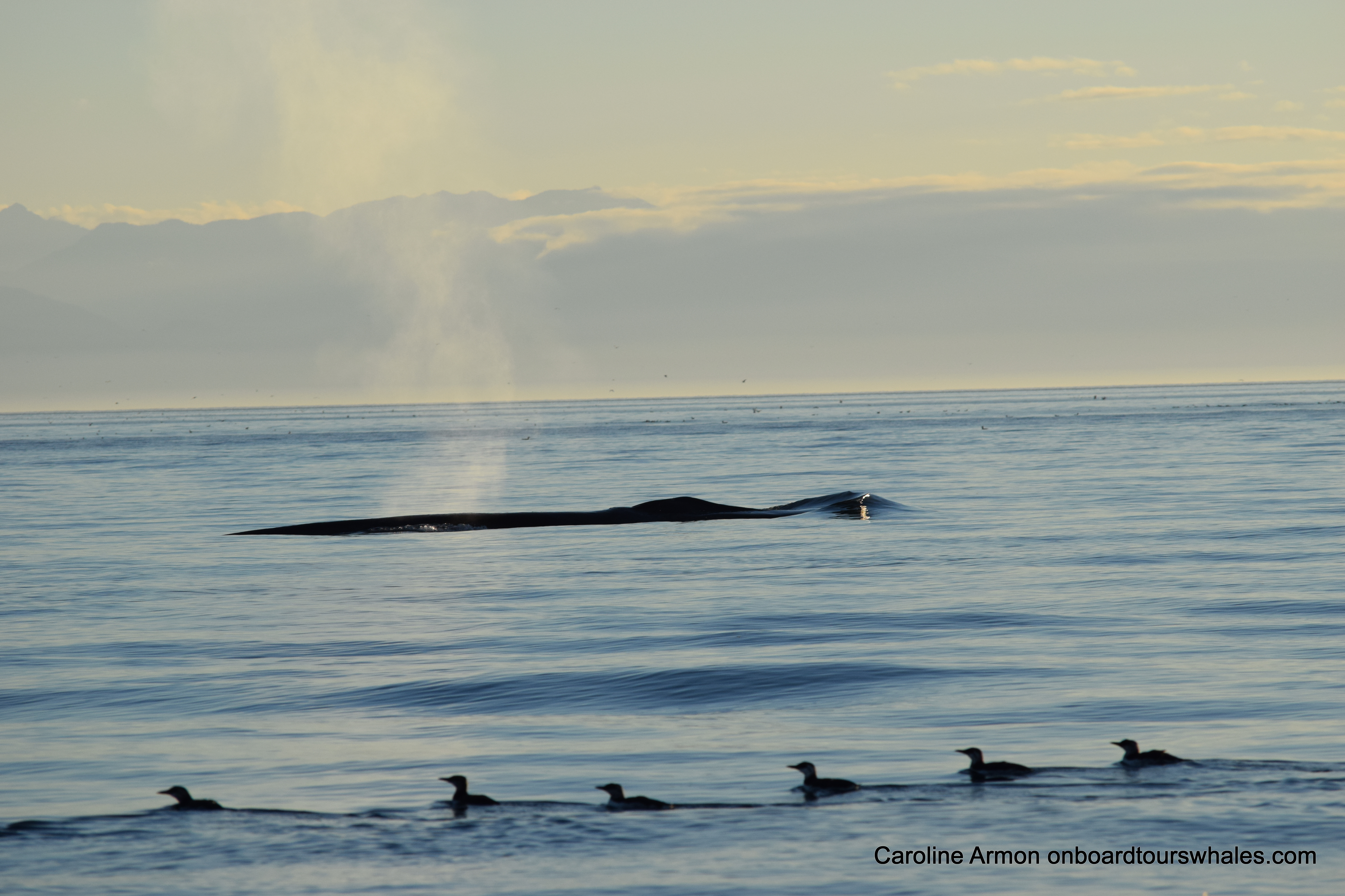 September in the Salish Sea is my favorite time. Over the years, the most diversity of cetaceans and behaviors- this September and sunsets are spectacular too! In the past several years, Fin whales came into these waters dead, struck by ships. So truly a privilege to meet this young Fin whale feeding out in the Strait of Juan de Fuca by McArthur Bank, hopefully a sign forage fish are increasing.