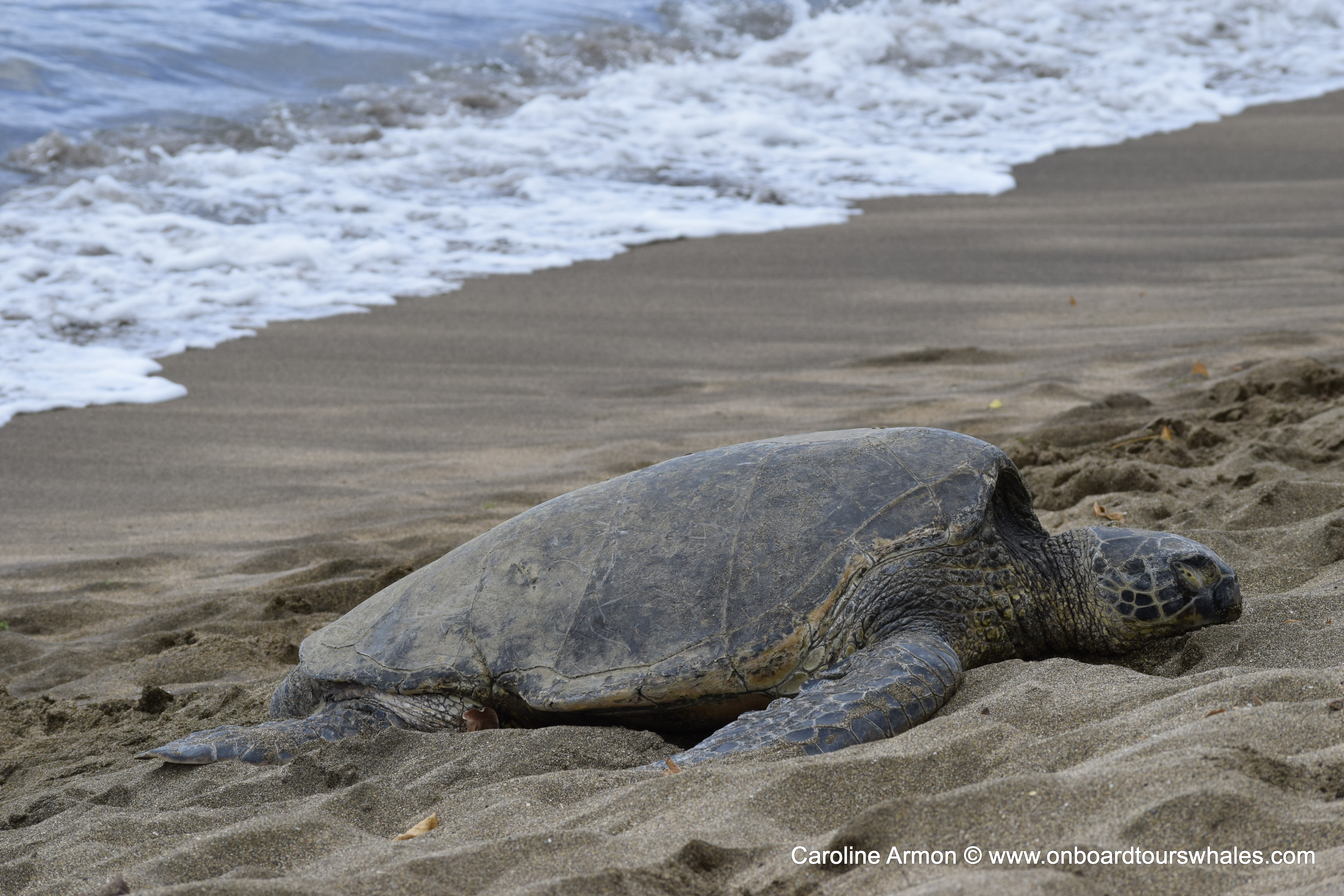 On several previous research projects there were possibilities to swim with free wild dolphins and whales, but hadn’t happened for me. Yet. As we headed out on the Pacific Ocean I asked Oscar if any Humpbacks whales had been sighted yet, they are a recovery success story. He said no, then bam! two Humpbacks came up exhaling on the horizon!! The first sightings of Humpbacks of the season in this area!! We were all elated, took photo identification photos, and noted the environmental conditions and behavioral sightings data. Then I asked Oscar about turtles in the area and bam! we start seeing Olive Ridley turtles resting at the surface throughout our trip.