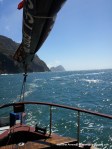 March 18, 2018 Awesome Tara arranged a trip for university graduate students and a few of us elders 😉 to sail southeast of Madeira Island to the Desertas Islands, by way of a sailing ketch from the first whale watching tour company on Madeira, started by one of the researchers we work with. Desertas Islands are a Nature Reserve for endangered Mediterranean monk seals and nesting seabirds. We were hoping to see some seals and seabirds but they tend to haul out and nest on the eastern side, while we approached the western side. Notice the 2 houses for the 2 Rangers- the only human inhabitants on the barren Desertas Islands! The geology and strata tell ancient stories. The winds and surf were up again so we couldn’t land and explore a bit. Some kids were seasick and felt better while we moored and some kids went snorkeling in the too cold for me water. We bashed our way back toward Madeira. Taking bonine- meclizine before the trip helped me, unfortunately too late for the kids. Some students hung onto the bowsprit going up and down like an amusement park ride, getting completely soaked and laughing the whole way. Reminded me of my sons doing the same thing the morning after we sailed through a dark night of hurricane force winds. I admire that resilience! No photos of the student bowsprit ride as I was getting sprayed, happy the sun was shining to dry us. Zoom in on the last scenic photo, what looks like a bridge, is the built over the water landing strip at the airport! Seeing all the common and bottlenose dolphins riding our bow and stern wakes made the day 🙂