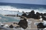 March 30, 2018 As my time on Madeira came to a close, a fine young man Bruno offered to give me a local’s perspective tour. I had ventured a bit in other regions, I also wanted to experience the northwest, southwest, and west sides of the island. Particularly Porto Moniz where there are lava pools, along with a restaurant named Orca, had to check that out! And to see a full sunset on the west side at the lighthouse at Ponta do Pargo. Bruno and his Mercedes Smart Car convertible made it a fun adventure. I think all locals drive fast on the narrow, switch back roads, yet seem to sense blind corners or oncoming traffic, display no road rage, and stop immediately when pedestrians are by a crosswalk in the city. We headed across the island stopping at a serene sheep ranch on a plateau. Along the way to Porto Moniz, Bruno showed me the villages where his grandparents and parents lived and grew up, making a living by farming. I am awed by the farm and garden terraces carved into the rugged mountains and the hard laborious work that takes. I had not seen a cow on island until then, a few small cattle ranches on this northern side. It was a beautiful warm sunny day, the surf was up at Porto Moniz as you can see in the first photos of the people-made lava pools, and the spray blowing across the village. I thought of swimming in the second set of more natural lava pools until I almost fell stepping on the algae clad stairs. I’m not as brave that way as other people are! Content to take photos of the majestic seas and lands. We drove back across the mountains past the high plateaus that folks are restoring with native trees and plants. A glimpse of high peaks through the clouds, and huge wind turbines, to the southwestern shores where Bruno pointed out his lifelong swimming and surfing beaches. Then timing just right to get to Ponta do Pargo Lighthouse for the sunset and full moon rising. A perfect day. I have never seen or been through so many tunnels- old mountain rock tunnels and new concrete enclosed tunnels, as on this trip and our travel back on the express highway to Funchal to drop me off. Bruno was going to meet up with extended family at another village to celebrate upcoming Easter. He said some of his favorite times are when all the extended family rent a house in different villages for a long weekend, to gather together celebrating whatever event. I sensed and so appreciated throughout my stay here on Madeira, the importance of, the care, kindness, and respect for family and elders, that is also shown to visitors.