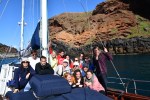 As we headed further offshore a group of 4 Bottlenose dolphins came to our boat, we slipped into the water but they didn’t stick around, were not interested in us so we got back in the boat and continued west. It was a good practice swim in snorkel gear and protocol. Oscar spotted Spotter dolphins in the distance, who can be ‘friendly’, but this group was swimming away and we got information on the radio from fishers about Spinner dolphins further out, so we went about 25 miles offshore. Having sailed the Pacific, being out of sight of land doesn’t bother me. This was a fun cruise but not a party boat, an intention to learn about and connect with sea life, along with plenty of water, soda, snacks and lunch.