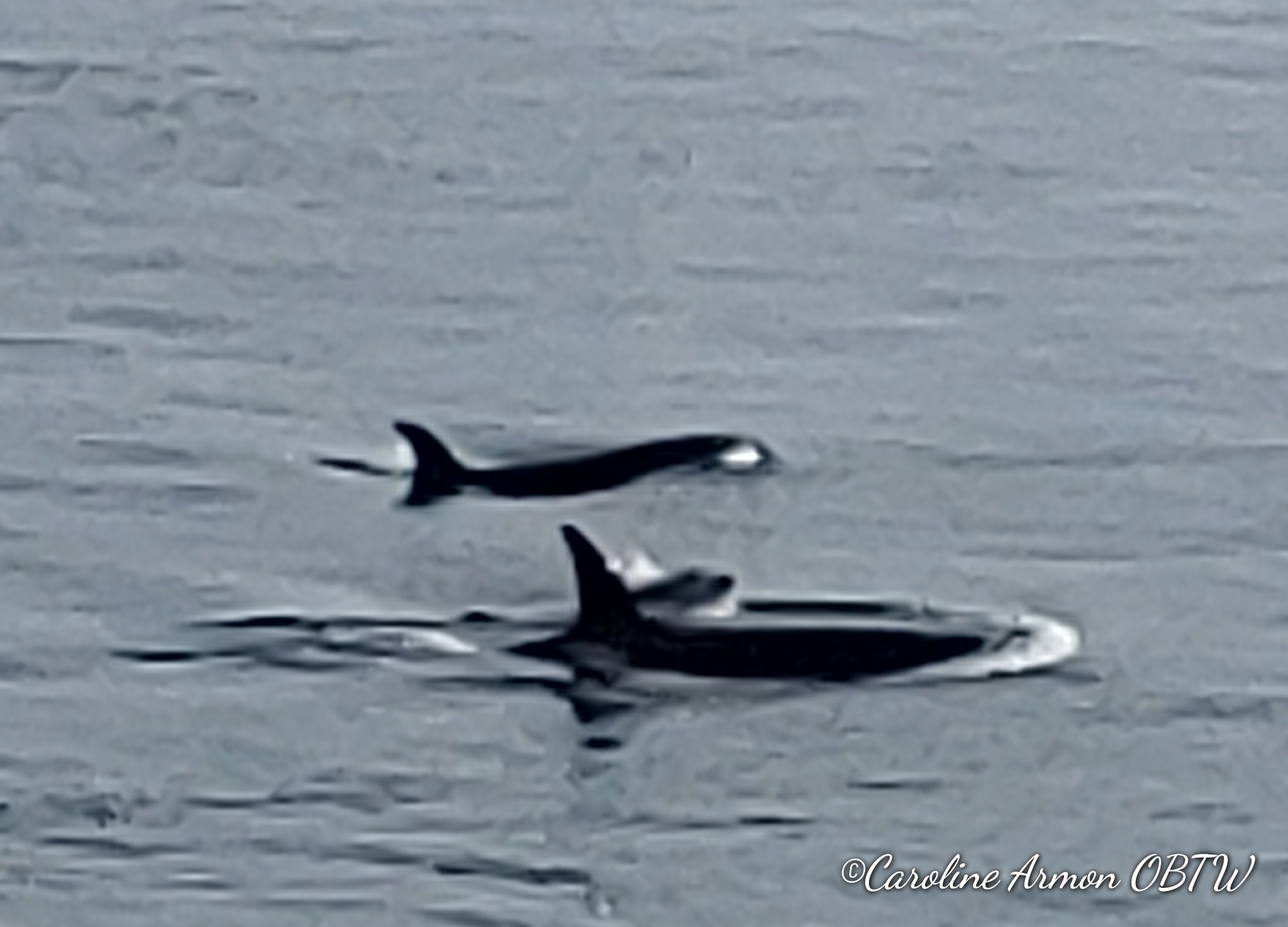 So good to see J35 Tahlequah (in 2018 she carried her dead calf for 17+ days) with J57 Phoenix her baby boy born the beginning of September 2020 active and healthy looking.