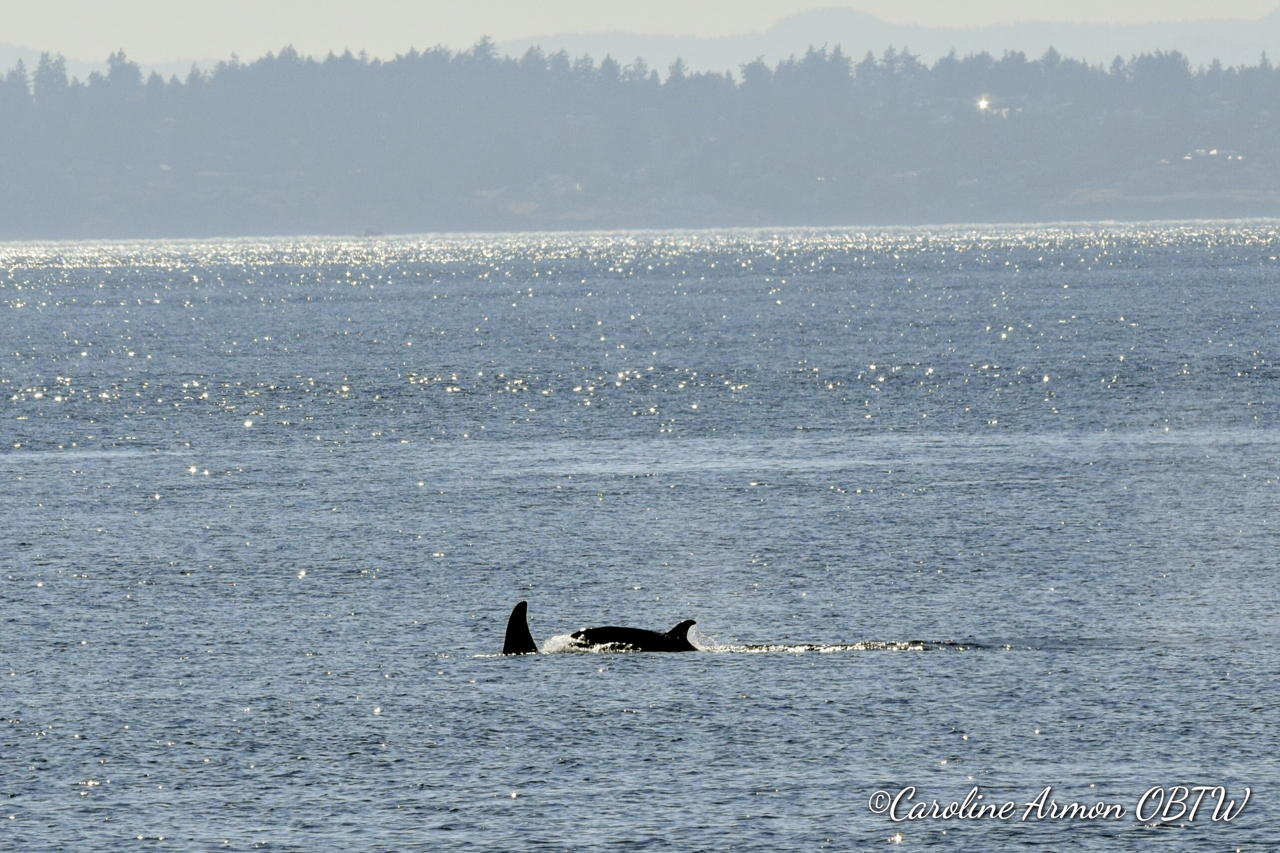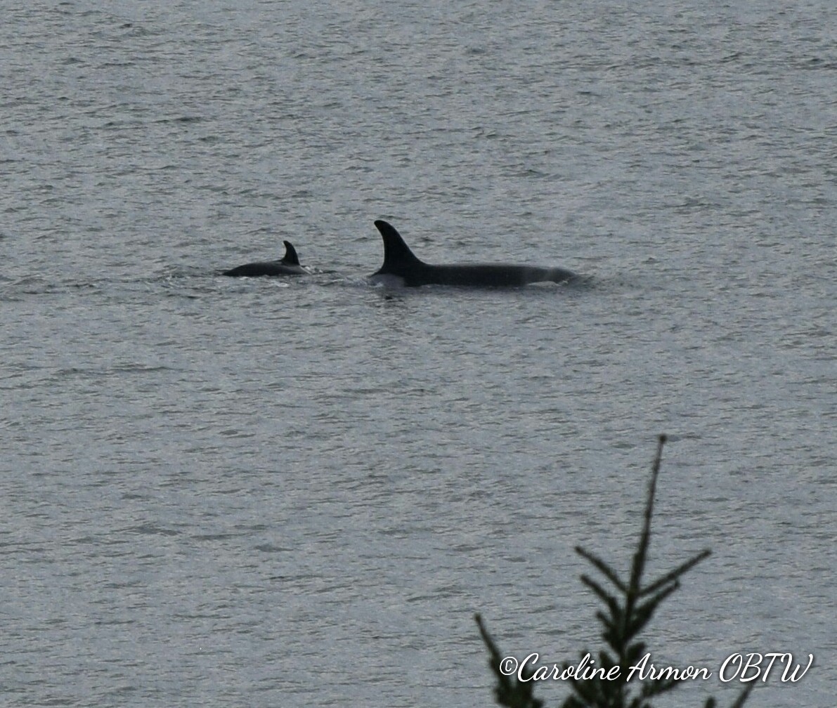 Transient-Bigg’s killer whales tend swim further out in Haro Strait. Mystical to me, that this light, second born Tl’uk- Moon and family swam so close to shore on this black new moon day (black means 2nd new moon in a month).
