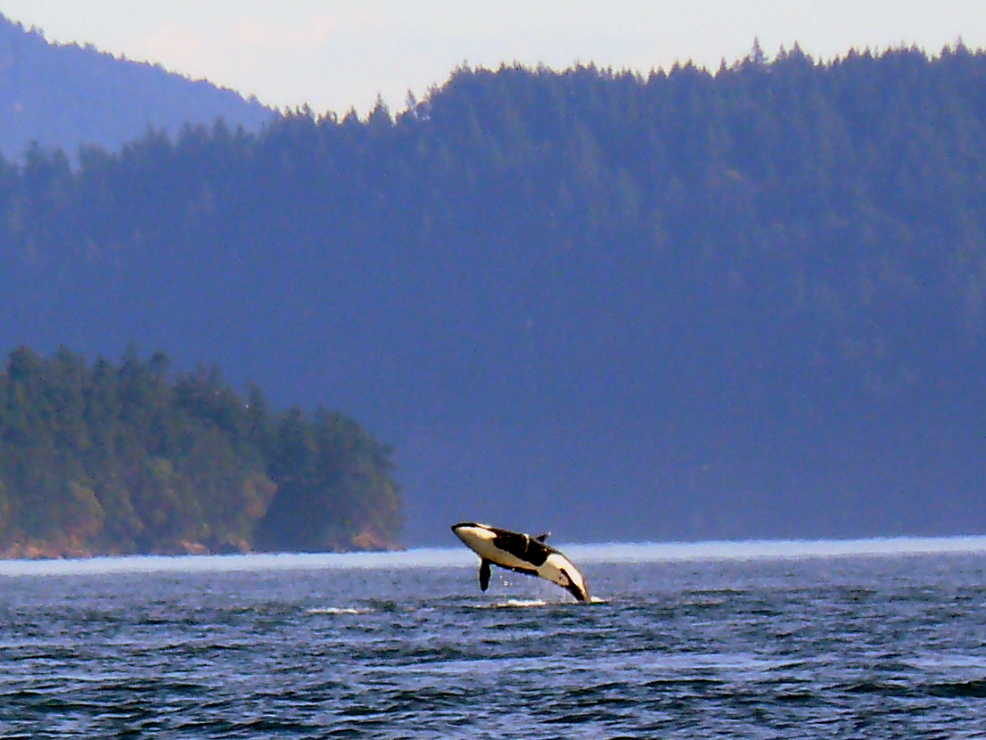 I was lucky to get the breach photos, when over 40 orcas from all 3 pods appeared to be resting in tight, slow-moving groups, then woke up and became very surface active! The most continuous, countless breaches by many of these whales, that I can ever remember seeing and hearing!!